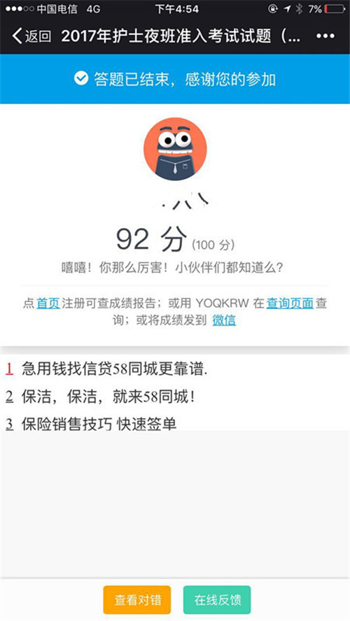 考试通过计算机考试系统进行试题乱序、选项乱序、智能换题等功能组卷,有效防止考生作弊;设置考试时间,到时自动交卷,试卷提交后即出成绩;考试结束后,考试系统立即统计出本次考试的数据。这种科学高效的考试模式有效地提高了工作效率,大大缩短和降低了人工改卷、计分的成本。今后,护理部的各项理论考试将会继续采用“无纸化”模式并进一步推广至临床护理单元使用。