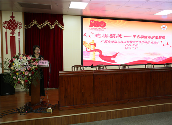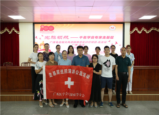 百年大党,恰是风华正茂!为充分发挥广西医学会党建优势,开拓县域基层医院对风湿学科的新思维,新理念!2021年7月17日,由广西医学会主办,广西医学会风湿病学分会承办,北流市人民医院协办的“党旗领航——千名学会专家走基层” 广西免疫相关风湿病规范化诊疗项目基层巡讲-北流站系列活动在北流市人民医院顺利举办。