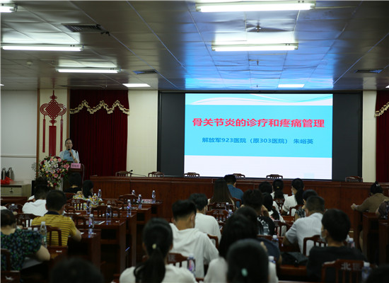 9时40分,巡讲活动在内科楼十三楼正式开始,会议由我院内分泌风湿科卢红平主任主持,我院相关科室和市各级医疗机构医护人员约有170人参加。此次活动有幸邀请了解放军第九二三医院(原三零三医院)风湿科名誉主任,主任医师朱峪英教授、广西中医药大学第一附属医院副主任医师,研究生导师唐宇教授、广西壮族自治区人民医院风湿免疫科科副主任,副主任医师医师黄新翔硕士,广西壮族自治区人民医院风湿免疫科主治医师霍晓聪博士共4位区内著名风湿免疫疾病专家授课。朱峪英、唐宇、黄新翔、霍晓聪四位老师先后就《骨关节炎的诊疗和疼痛管理》《糖皮质激素在风湿性疾病中的应用》《常见关节炎的鉴别诊断》《系统性红斑狼疮规范化诊治》等专业课题进行讲解。此外霍晓聪老师还进行了疑难病例的分享。