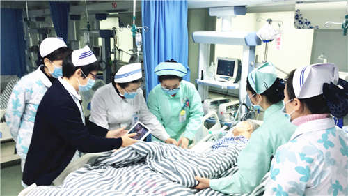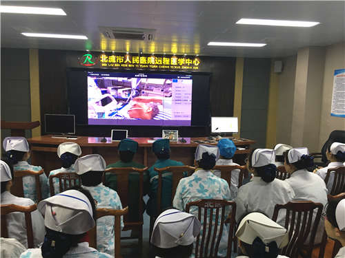 此次首例远程护理视频查房在北流市人民医院护理部肖淑宁主任的主持下正式开始,双方进行简短参会人员介绍后,ICU陈永娟护士长详述了请求会诊患者的基本病情,就该患者护理过程中出现的问题提出交流,如:CPR术后应如何保证循环稳定?脑复苏护理关注点?如何预防肾衰及感染等?戴老师均一一给予了详细的指导和护理建议,同时还就压疮护理给予了专业的、前沿性的解答。