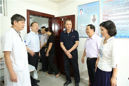 启动仪式上市医院凌政院长、一附院钟远鸣副院长、陈素贞部长先后为项目启动致辞。陈部长代表北流市委、市政府向广西中医药大学第一附属医院的专家团队到北流开展健康普查项目表示欢迎和感谢,让北流市民享受到高质量的医疗服务。随后领导专家一行还参观了肛肠诊室和内镜室,现场了解团队工作情况及活动开展情况。