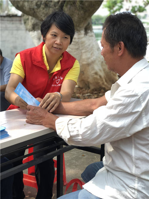工会副主席罗文嫦指导村民填写一户一产业项目的申请手续