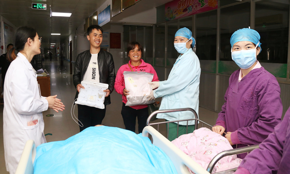 黄女士丈夫:俗话说猪好养,猪可爱,我一直想要个猪宝宝,我爱人也想要个猪宝宝,好多礼物、婴儿用品都是按照象征猪宝宝意义来买的,现今如我所愿,终于把猪宝宝等来了。按我们家的习俗,凌晨出生的猪宝宝时辰最好,大年初一抱上金猪,我们以后肯定会顺风顺水、事事如意。同时感谢北流市人民医院产科所有医护人员的精心呵护和照顾,让猪宝宝能顺利出生,这份恩情我们永远不会忘记。