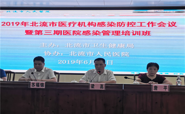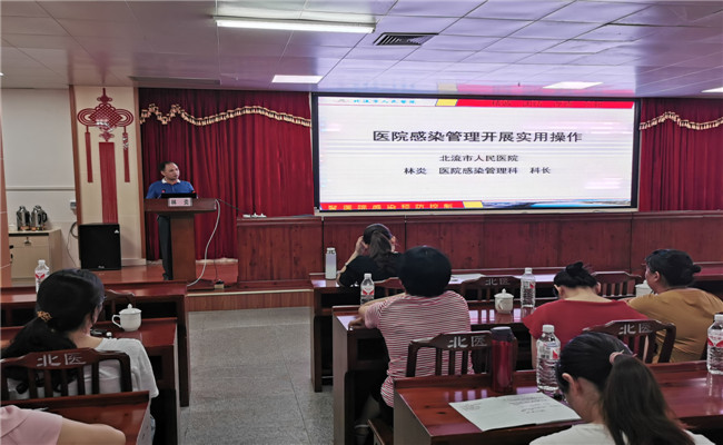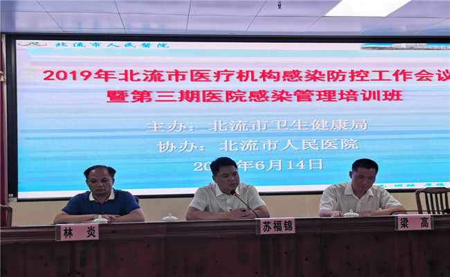 培训会由市卫生健康局医政股李冰主持,市卫生健康局党组成员、副局长梁高、市人民医院副院长苏福锦出席了开幕式。玉林市医院感染管理质量控制中心主任、玉林市第一人民医院感染管理科科长唐平,玉林市第一人民医院感染管理科专职人员陈译羽医师,北流市人民医院医院感染管理科科长林炎到场授课。各市直和镇卫生单位分管领导、医院感染管理负责人或专(兼)职人员、各临床科室主任、护士长共190多人参加了学习培训。