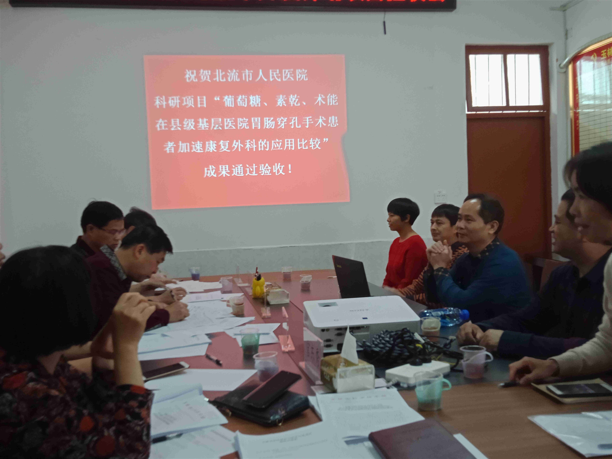 专家们认真听取了项目组的工作汇报,现场审阅相关资料,经过质疑答辩和充分讨论,肯定了北流市人民医院开展的4个项目资料齐全,数据翔实,完成了合同规定的各项任务指标内容,符合玉林市科技项目验收要求,专家组一致同意通过验收。