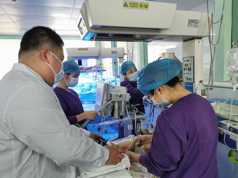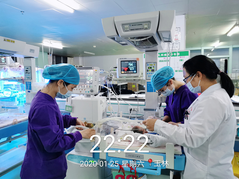 大年初一晚上,新生儿科病房里,值班医生轻轻走到亮着蓝光的治疗箱前,一个瘦弱的宝宝安静地睡着。“大小便正常,心肺正常,刚喝了5毫升奶”,护士轻声向医生汇报。“嗯,多观察,这个需要注意肺部感染。”值班医生细心用听诊器听完宝宝肺部后叮嘱。