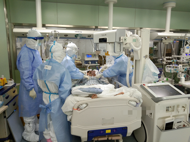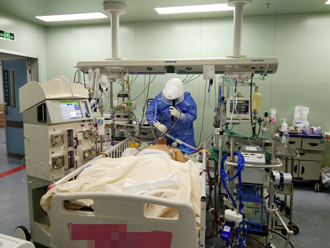 决战ICU:全力救治新冠肺炎重症、危重症患者,来自北流市人民医院援鄂医疗队员莫剑医生第一天工作现场曝光:为重症患者进行"气管镜吸痰”,这种操作医生的脸不得不正对病人口鼻,暴露风险非常高,但他们凭借过硬技术,从容操作。