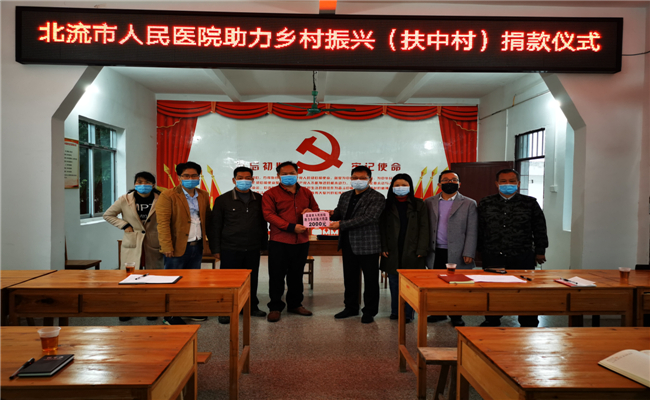 随后,吴雪梅副书记一行来到禾界村,驻村第一书记潘星予首先介绍了禾界村乡村振兴建设的情况,同时和村干部一起考察了村里的企业和水果专业合作社,详细了解了企业助力乡村振兴情况和发展中亟需解决的问题。吴副书记指出,当前要以乡村振兴建设为契机,找准思路,明确目标,多借鉴其他乡村示范点的先进经验,挖掘、扶持、培育禾界村发展新动能,坚持示范带动,巩固和壮大支柱产业,加快实现农业农村现代化,全面推进乡村振兴建设。吴副书记还代表北流市人民医院为禾界村振兴乡村工作捐款3000元。